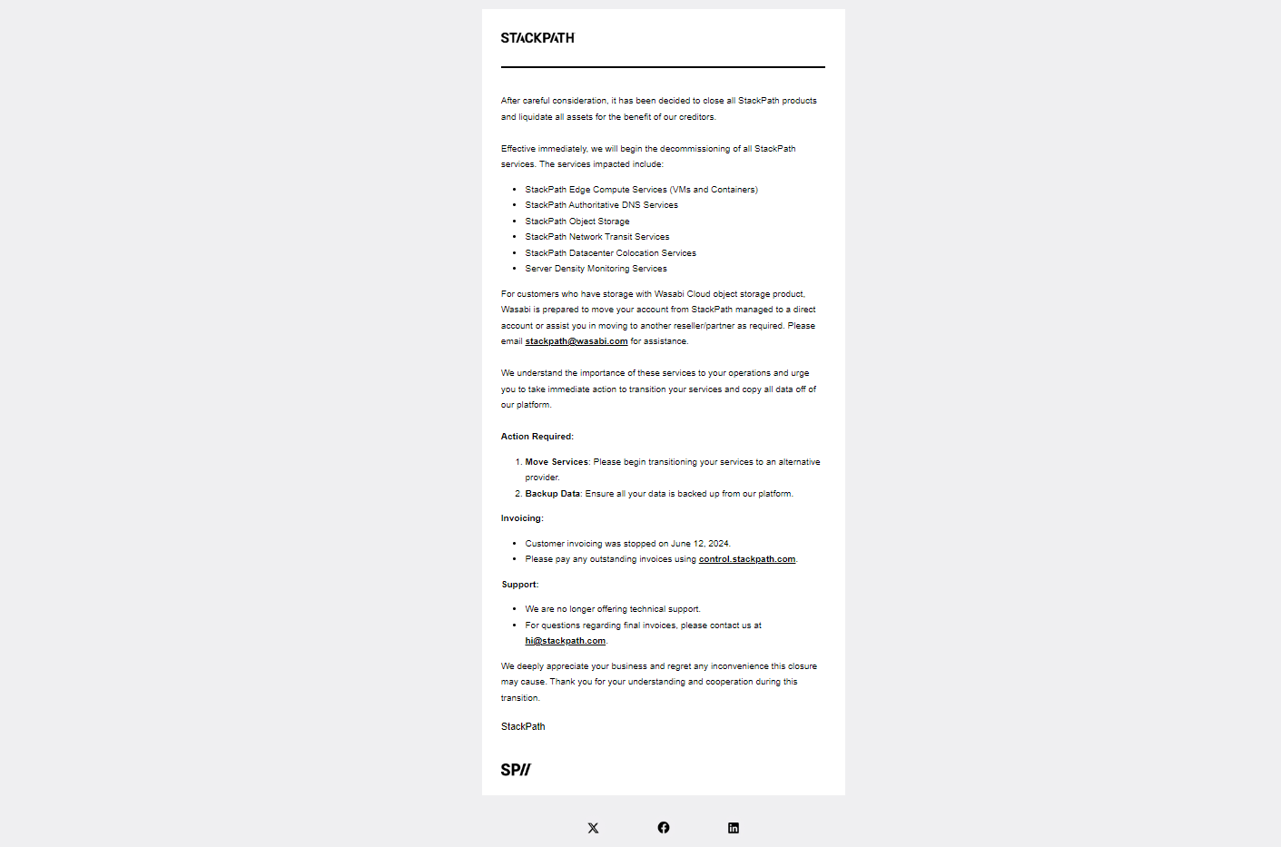 Source: A hubspot email delivered via StackPaths hubspot domain (https://43963146.hs-sites.com/important-notice-stackpath-immediate-end-of-life)
